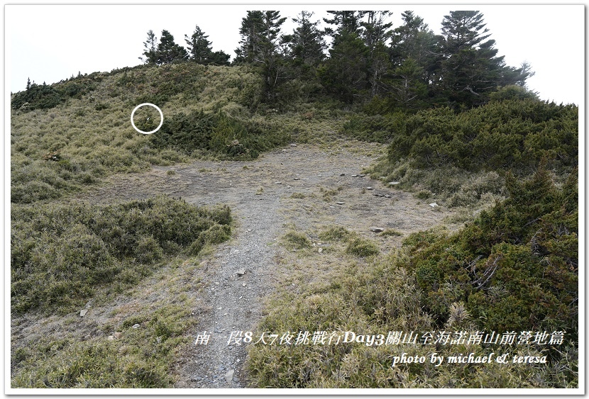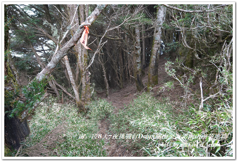 接下來的路徑在白色圈圈處,因為樹上有綁登山條